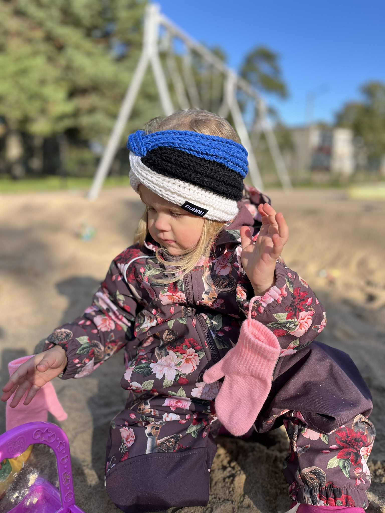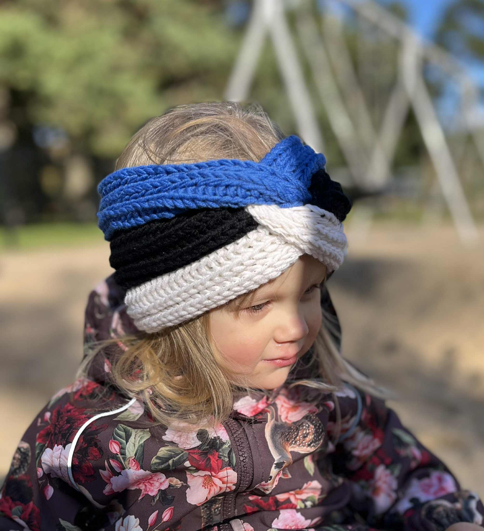 Sini-must-valge 100% meriinovillane käsitsi kootud peapael. Kootud topeltlõngaga.   Meriino on pehme ja kohev 100% meriino villast valmistatud lõng. Meriino lõng on väga pehme, ei torgi ja ei ärrita nahka. Sobib ideaalselt laste kudumiseks. Samuti mütsideks, sallideks ja kampsuniteks. Meriino lõng on töödeldud masinpesu kindlaks. Meie tarnija garanteerib, et meriinovill on mulesing-vaba.