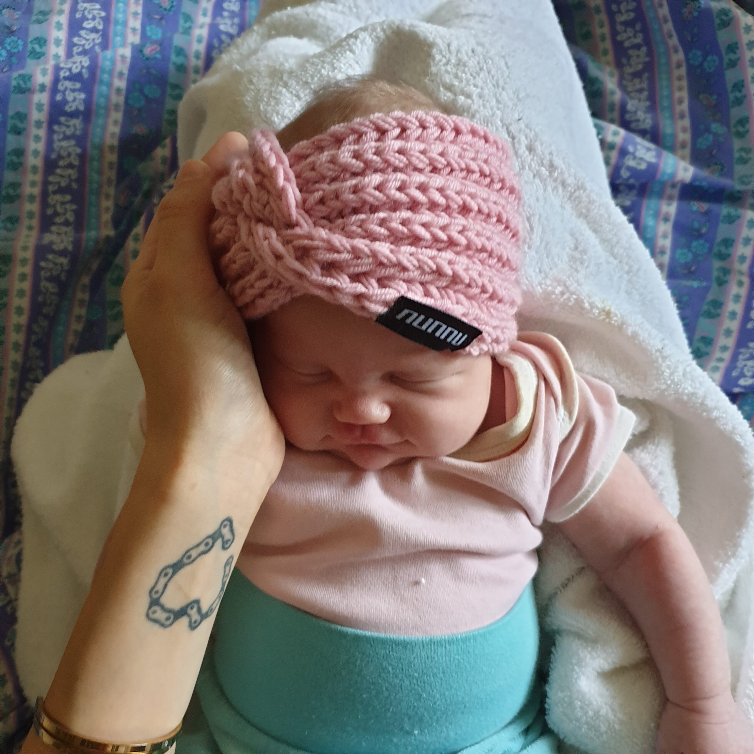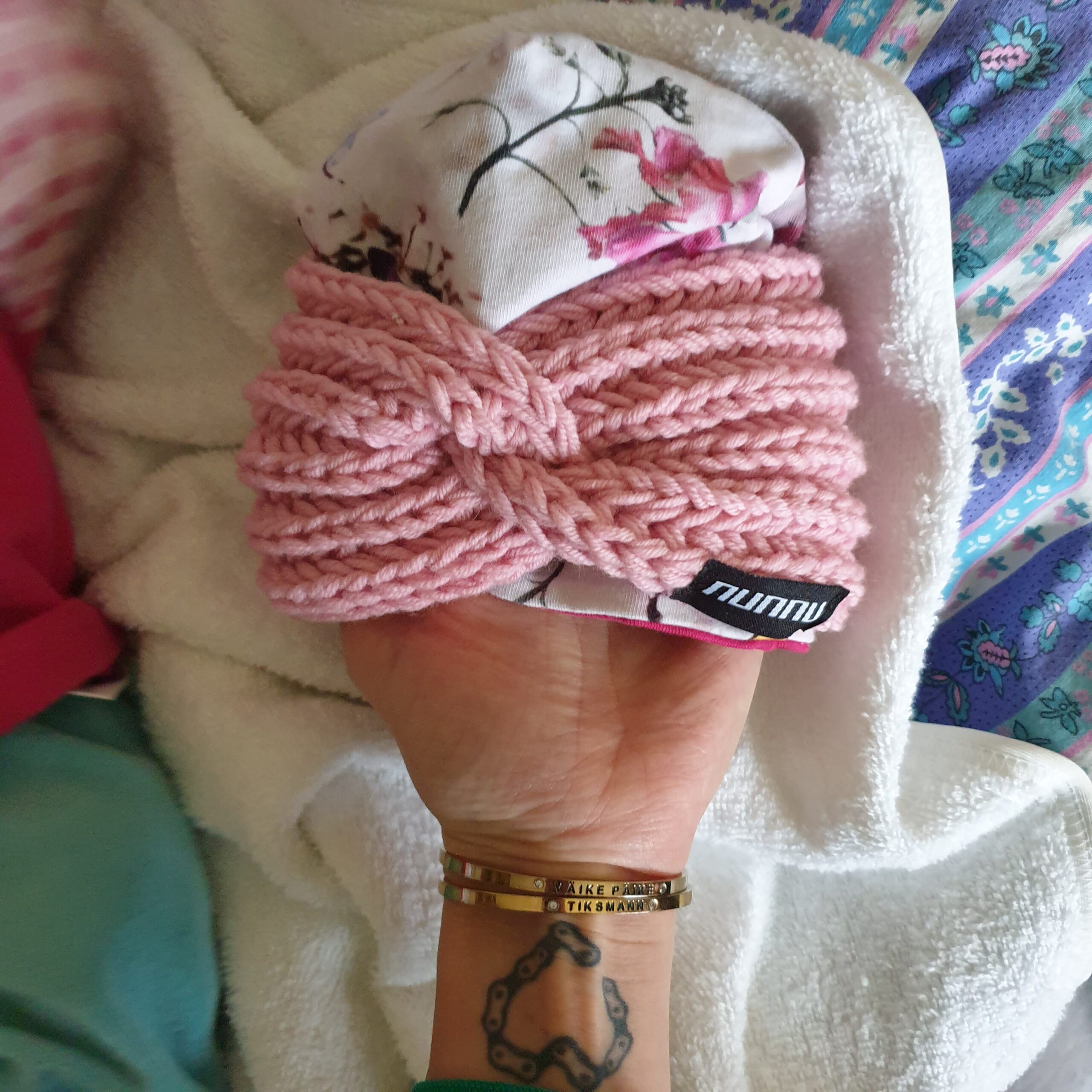 Vanaroosa 100% meriinovillane käsitsi kootud peapael.