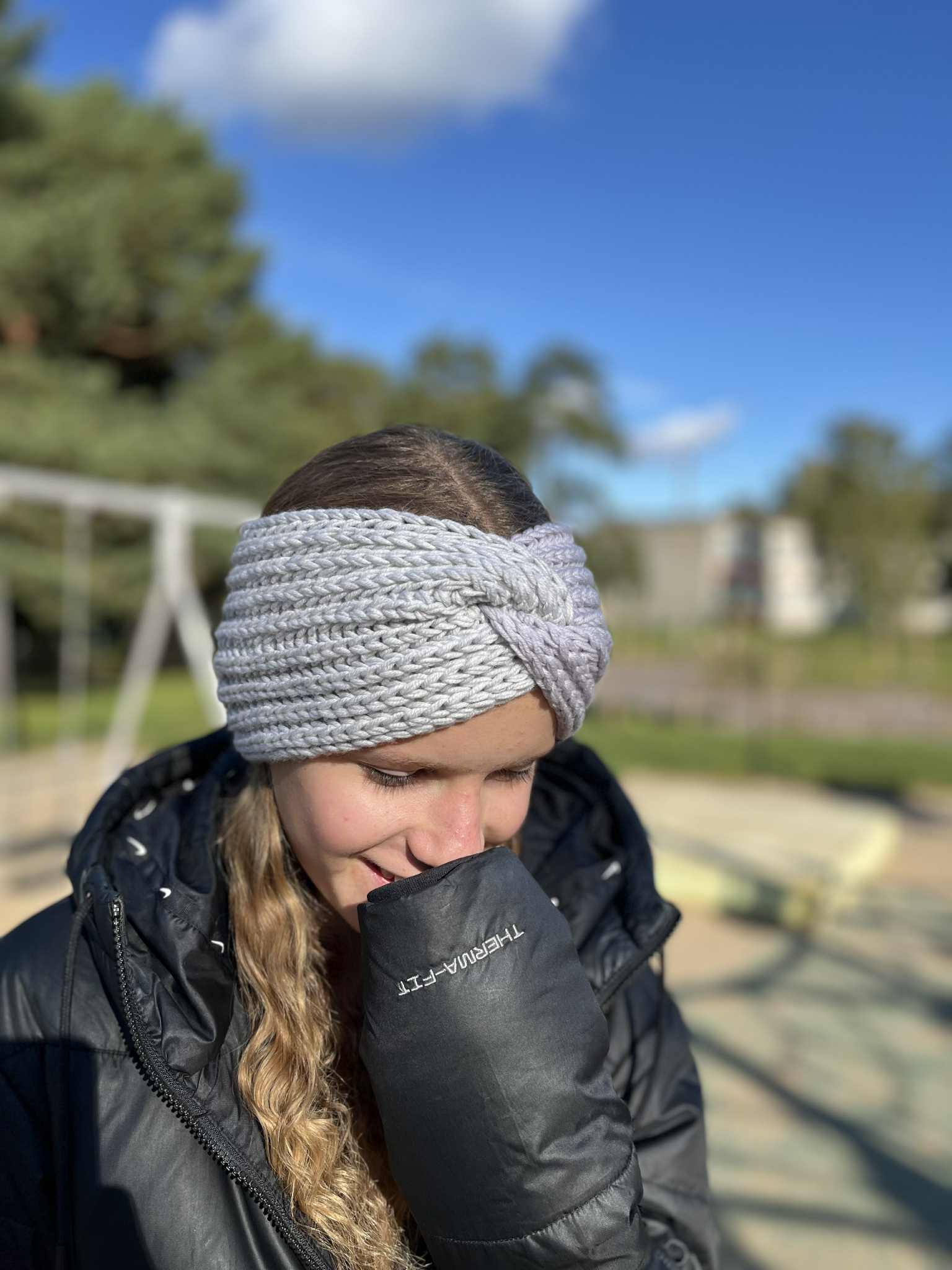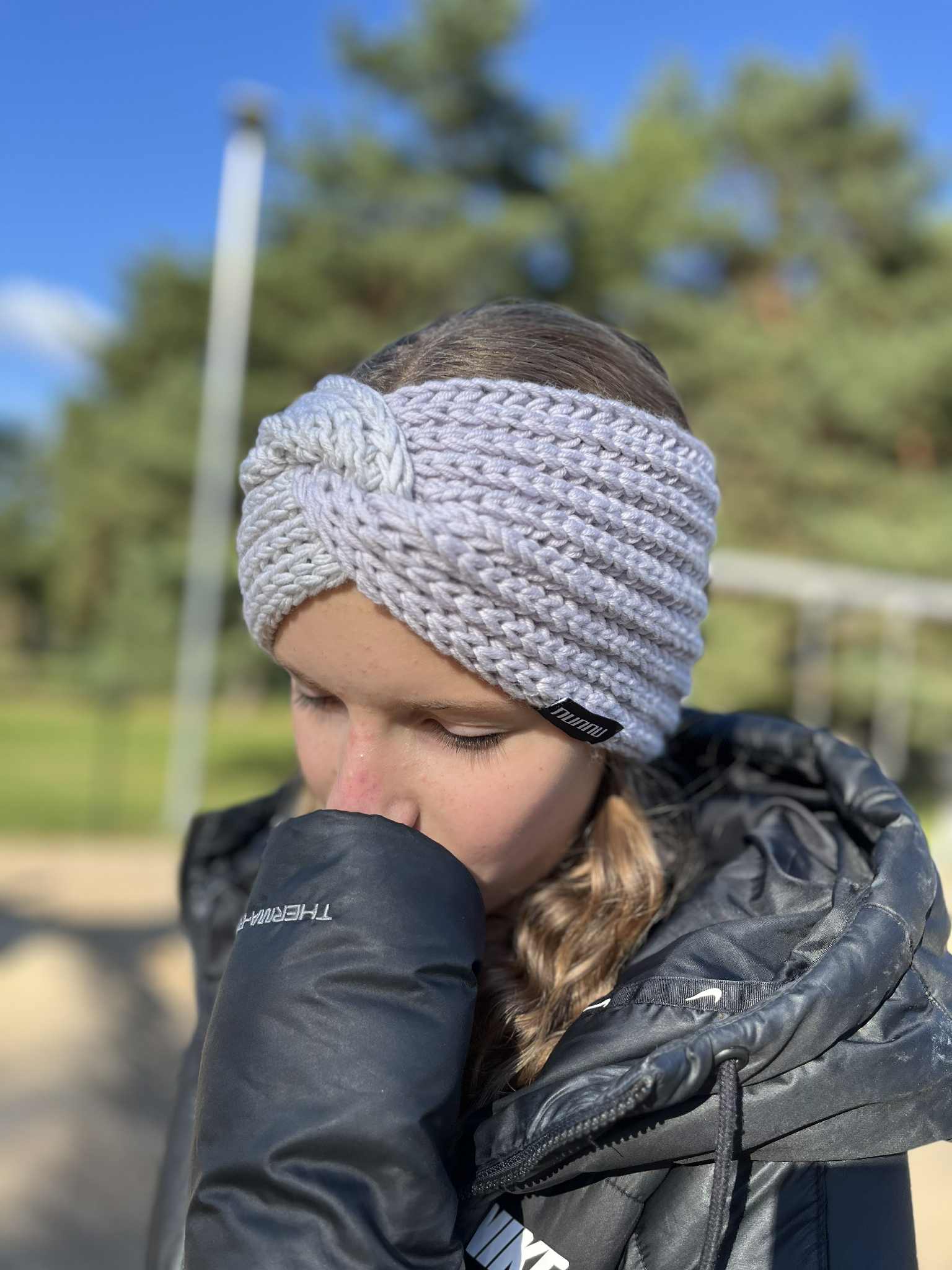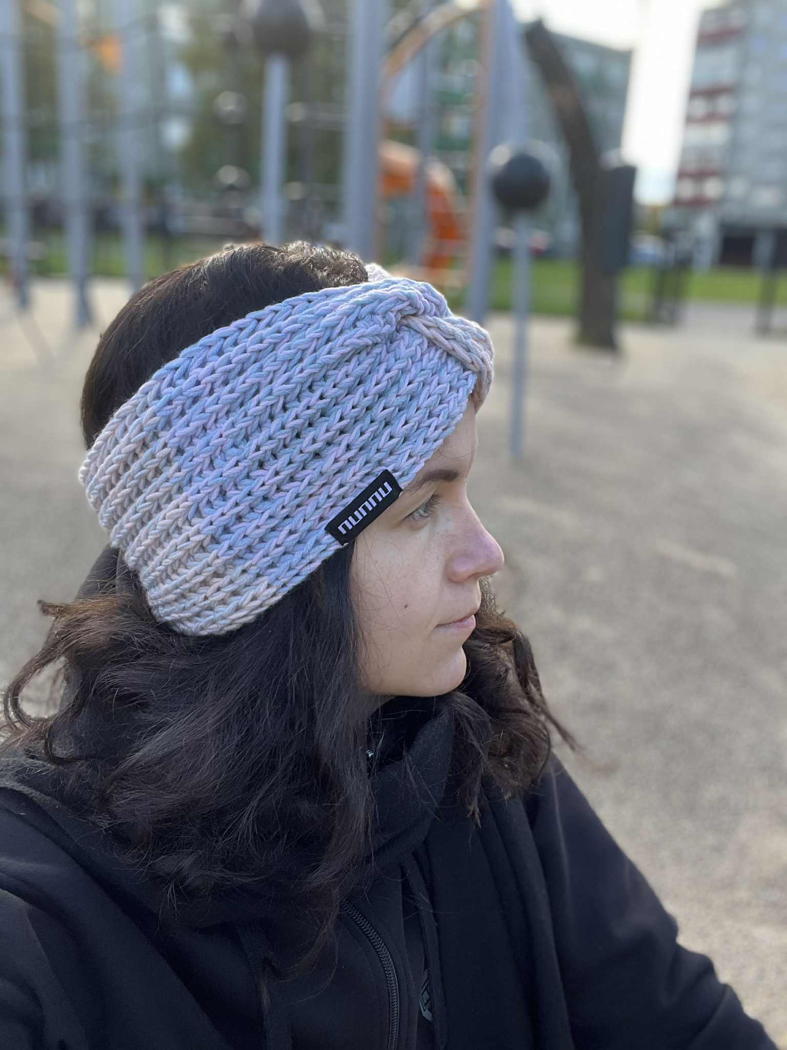 Kahe halli segu 100% meriinovillane käsitsi kootud peapael.