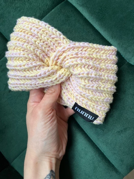 Kollase kirju 100% meriinovillane käsitsi kootud peapael.