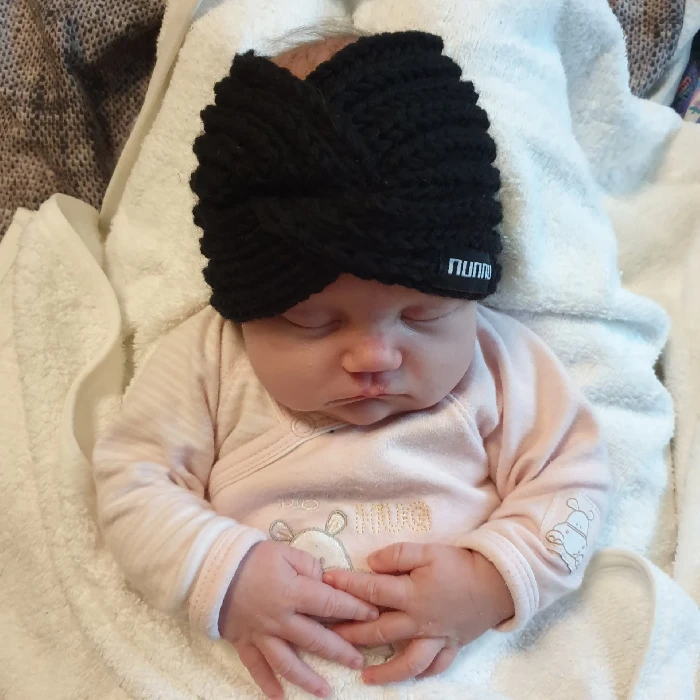 Musta värvi 100% meriinovillane käsitsi kootud peapael.
